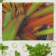The young, green and orange tropical plant, in the original photograph by ZoeSPEAK on this Kitchen Towel, is called a screw pine. It is actually a distant relative of palm trees, called "screw pine" because of the spiraling way it grows, and the fruits that look like pine cones.
