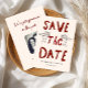 A playful and modern save the date card featuring your own photo and a customizable QR code.