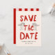 A playful and modern save the date card featuring your own photo and a customizable QR code.