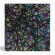 A strong modernist layered abstract design made up of randomly placed vector lines over a color texture background creating an interesting faceted design