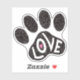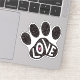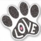 Stickers featuring a scribbly paw print with the text love and a pink heart inside the o.