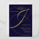 Chic and elegant real gold foil calligraphy wedding invitation with and flourish ampersand. With a beautiful brush calligraphy script on navy blue.