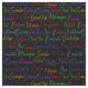 This colorful all-over repeat pattern features the names of many of the major ballroom dance styles, set in a modern script font that resembles handwriting. Designed in a variety of bright colors, it forms a lovely repeat pattern that upon closer inspection reveals the words: foxtrot, tango, cha cha, rumba, samba, east and west coast swing, merengue, bachata, hustle, quickstep, waltz, paso doble, two step, bolero, mambo, and jive. This art is designed with a transparent background which allows for you to easily change the background color (shown here as black) by choosing to customize further.