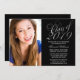An elegant black and silver script font class of 2019 graduation party announcement. Perfect for a high school senior graduation, college graduation or graduation party! Designs are flat printed illustrations/graphics - NOT ACTUAL SILVER FOIL. To resize and position your photo, click on the "CUSTOMIZE" button.