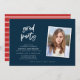 Yes, you can print on the back of your invitation for free! Most designs already have a corresponding design on the back that can be personalized using the Design Tool and going to Layers. This is a great way to communicate more information or further personalize your Script Blue And Red Photo Graduation Party Invitation. The option is really up to you.