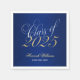 Elegant script font class of 2025 graduation paper napkins. Shown in gold, white and navy blue. Perfect for a high school senior graduation, college graduation or graduation party! Designs are flat printed illustrations/graphics - NOT ACTUAL GOLD FOIL.