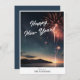 Script Caligraphy Happy New Year Fireworks Theme Holiday Card