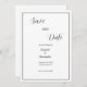 A lovely black white script calligraphy minimalist wedding save the date card.