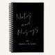 Minimalist black notebook, with chic white script typography "Notes and Musings", to inspire your creative ideas and thoughts... personalized with your name on the front and your monogram with name on the back. Add your own information by following the "Personalize this template" link.
