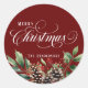 With a deep red base color and a watercolor Christmas Decoration with red berries, greenery and pine cones. A swirly white script font in the center of the card saying Merry Christmas. Easy to customize and change, or keep as is. This traditional Christmas sticker are versatile with many uses. Add to your gifting as a part of wrapping and labeling, add to your mailing and envelopes, add on gift bags or other.