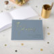 Celebratein style with this modern minimalist dusty blue wedding guest book with modern script and fully customizable text.