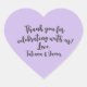 These thank you stickers feature a heart. Font choice and color of text is also customizable to fit your style.
