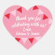 These thank you stickers feature a heart. Font choice and color of text is also customizable to fit your style.