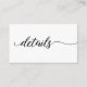 The elegant script typography used for the word "details" is adorned with exquisite long-tailed embellishments, adding a touch of sophistication and charm to the design. This attention to detail creates a visually appealing and stylish enclosure card that beautifully complements your wedding theme.