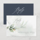 Script elegant wedding eucalyptus botanical navy RSVP card