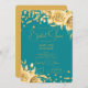 Script Gold Floral Glitter Bridal Shower Teal Invitation