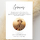 "Discover solace in our 'Script Gracias Spanish Funeral Photo Thank You Card.' Featuring an elegant 'Gracias' calligraphy font on the front, this card is a heartfelt expression of gratitude. Personalize this card with a short thank-you note, a cherished photo, a name, and a lifetime, ensuring a thoughtful tribute. Our customizable card offers comfort during bereavement, serving as a sincere 'thank you' in Spanish. Its calligraphy detailing and personalized touch create a meaningful memorial gratitude card. Express your heartfelt appreciation and honor a cherished memory with this bereavement photo tribute, offering solace and gratitude in a difficult time."
