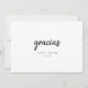 On the front of this card, 'gracias' takes center stage, scripted in calligraphy, creating an artistic focal point. Personalize with names and the date to make each card uniquely yours. Flip to the back, and a cherished photo occupies the left side, with a heartfelt 'gracias note' on the right, expressing your thanks with love.