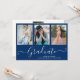 Script Graduate 4 Photo Collage Blue Graduation Invitation