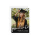 The back showcases a second photo within a rounded rectangle, with space beneath for a heartfelt note from the parents, highlighting accomplishments and expressing pride. Fully customizable, you can adjust the text, fonts, and photos to match your style. Perfect for celebrating this significant achievement.
