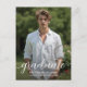 An elegant graduation announcement postcard features your photo, the word graduate, your name, school and class year on the front and your announcement details on the back. You can change the wording on the back from an announcement to a graduation party invitation. MATCHING items in our collection.