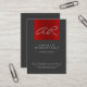 Script Gray Red Trendy Monogram Business Card