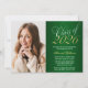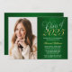 Plain white envelopes are included with paper invitations and will come to fit the invitation size you select. If you don’t need the envelopes, you may choose to not receive them by selecting the dropdown below "Envelopes" and choosing "None." If you’d like to have a design on your envelopes, you can browse all of these available envelopes to find the design that complements your Script Green Gold Photo Graduation Announcement.