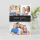 Script Happy New Year Typography 3 Photos Holiday Card