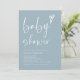 Script Heart Dusty Blue Boy Baby Shower Invitation