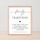 Encourage your guests to share their favorite family traditions with this poster sign, featuring modern script, heart and editable text. Easily customize it by clicking on the "personalize" option.