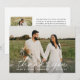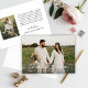 This charming folded thank you card features a full-bleed couple photo with "thank you" written in casual white script, a small heart nestled between the words. The back reveals a second photo alongside a warm, customizable thank you message. Names and wedding date are fully editable to make it uniquely yours. A sweet and modern choice for newlyweds.