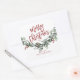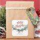 A festive, red, green and white merry Christmas gift sticker, favor sticker or envelope enclosure featuring bold script and watercolor greenery with leaves and berries.