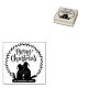 This "Merry Christmas" rubber stamp features a wreath with a couple of cats and family name.