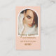 Modern style pink arched photo background with script typography with logo , photo social handle, email, phone number and website option . Perfect elegant minimalist loyalty card for nail tech, makeup artist, hair stylist, Coaches & consultants.