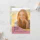 This Class of 2026 photo graduation party invitation features a large photo with a modern wave shape and is accented with an addition gold wave on a rose gold background. The back side offers another photo that fills the entire back and custom text for your grad party invitation.
