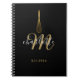 An elegant black and gold script monogram name recipe notebook featuring a chic gold whisk. Personalize with your initial and name to create a beautiful elegant gift. Perfect for home and business use. Designed by Thisisnotme©
