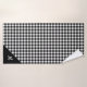 Stylish custom towel set features a handsome black and white buffalo plaid with a white script monogram in a black triangle in the lower right corner of each piece. Customize it with your initial in the sidebar. Black, white, and gray squares form a bold checked pattern. Buy the full set or any piece of it.
