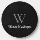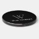 Modern monogram black wireless charger with your initial in elegant grey typography and your name in a stylish white script.