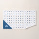 Chic custom towel set features blue polka dots on a white background with a white script monogram in a blue triangle in the lower right corner of each piece. Customize it with your initial in the sidebar. Buy the full set or any piece of it.