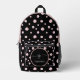 Script Monogram Custom Name Black Polka Dot Circle Printed Backpack