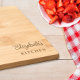 Personalized cutting board gift for your favorite cook featuring their name monogrammed in a bold stylish script and "Kitchen" in elegant serif typography.