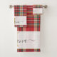 Script Monogram Plaid Rustic Red Name Bath Towel Set