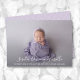 Elegantly sweet birth announcements feature your favorite newborn photo in full bleed, your baby girl's name in white script text, birth stats and your names in chic white lettering centered at the bottom. Change the color on the back to any color that suits your photo under white polka dots or remove the dots. You can add more photos on the back, too!