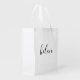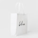 This personalized bag is simple, modern and elegant. Text and text color is fully customizable. Perfect as a bridesmaid gift, wedding favor, birthday or graduation gift. Part of a collection from Parcel Studios.