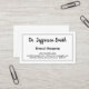 This business card design features a triple-line border, and a script-style name. It could be used by a professional such as a dental surgeon, cosmetic dentist, endodontist or general dentist. The name, profession and contact info can be personalized.