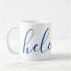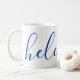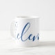 A gorgeous mug featuring a custom name in a modern, elegant script font. In navy blue and white. Wonderful as a mother's day, holiday, birthday, housewarming or bridesmaid gift.