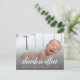 Modern birth announcement postcard features a full photograph on the front and a smaller photo on the back. Your baby's name is written on the front in elegant white script text. Their birth stats are below in a simple bold font. Don't worry a special overlay ensures that the name will be visible, regardless of the photo you use. Grandparent, aunts and uncles will love seeing all the photos! There is room on the back for a personalized greeting. Your return address is included in the template for your convenience. Gender neutral design is perfect for either a baby boy or girl.