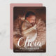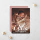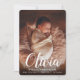 Let baby's name take center stage with these elegant birth announcements, featuring a vertical photo with baby's first name overlaid in white calligraphy script lettering. Personalize with baby's middle and last name and birth stats beneath, and add an additional photo to the back, along with a personal message.