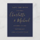 Script Navy Blue Gold Wedding Save the Date Postcard