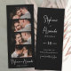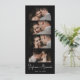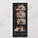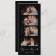 Stylish Elegant Script Minimalist Photo Booth Bookmark Wedding Save the Date card in black. Feature elegant white hand lettered calligraphy name script and 4 photo strip on black background. These save the date photo strip bookmarks are a perfect way to announce your special day to all your friends and family.